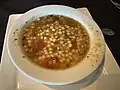 Pasta e fagioli (or "pasta fazool" in Italian-American slang, from southern Italian fasule (lit.'beans') instead of standard Italian fagioli) pasta with beans, often cannellini beans, that has the consistency of a stew