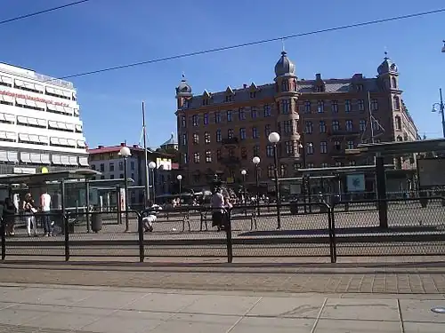 Järntorget is a public square in Gothenburg, Sweden. A hub for public transport (see Gothenburg tram system), it is located west of Haga and is the starting point for the boulevards of Linnégatan to the south and Nya Allén to the east; and the streets of Första Långgatan and Andra Långgatan to the west. Järntorget is the traditional home of the city's labour movement, with the Social Democratic Party, ABF, Folkteatern, Folkets hus and trade unions located here.[1]