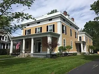 J. Franklin Peck House is a historic home located at Lima in Livingston County, New York. It was built in 1853 and is a 2+12-story, three-bay, Greek Revival–style frame dwelling.[2] The main floor consists of a center hallway with four rooms--a formal parlor, a library, a large dining room, and a small parlor. A modern kitchen is located in the back of the first floor. The second story contains four bedrooms in the main house and three additional rooms in the back. The house has ten separate fireplaces, plaster crown moldings and ceiling moldings, and pocket doors.