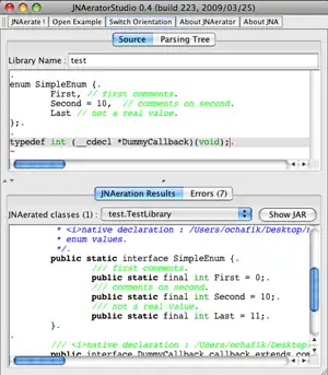 While JNAerator is mainly a command-line-based tool, it also contains a limited GUI that's ideal for simple quick generation experiments.