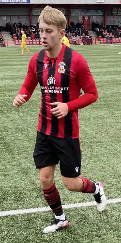 He moved up a level to join Southern League Premier Division Central side Tamworth on an initial one-month loan on 14 December 2018.[9] He made his Tamworth debut on 22 December in a league fixture at home to St Ives Town, which the away side won 2–1,[10] and coped sufficiently well with men's football that his loan deal was systematically extended to the end of the season,[11] during which he scored five goals from 21 league appearances.[12] The club's manager, Gary Smith, was appreciative: "He's been a fantastic player for us, someone with a great attitude and appetite for the game. He's still learning and growing in stature but he has been absolutely fantastic – a really clever player with great feet."[13]