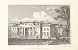 In the 1820s the Balfours employed the architect Robert Smirke, designer of the British Museum, to build a large classical mansion at Whittingehame,[1] along with a stable block and gate lodges.[15] They equipped their home with French furniture and Sèvres china.[1] Built of pale cullalo stone, the house was expanded and altered in 1827 to the designs of William Burn, which were not entirely successful. Colin McWilliam and Christopher Wilson describe them as having changed "a dry composition into a boring one".[15]