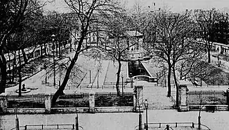 The park – which was designed by the architectural firm of Carrere & Hastings – was originally called "St. John's Park," which had also been the name of a no-longer-extant park about a mile south on Hudson Street from about 1827 to 1867. The later park was renamed "Hudson Park" in 1896, and finally became "James J. Walker Park" in 1947, named after former mayor Jimmy Walker, whose family had moved to 6 St. Luke's Place in 1886.[4][5][6]