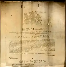 1699 Proclamation by John Nanfan, Lieutenant Governor of New York