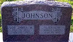James M. Johnson (December 8, 1832 – February 15, 1913) was an American soldier and Arkansas politician. During the American Civil War he was a southern unionist and officer in the Union Army; serving as an aide to multiple generals and later commanded the 1st Arkansas Infantry Regiment (Union), eventually being made a brevet brigadier general.[1] Following the war he would become the 2nd Lieutenant-Governor of Arkansas and later the 10th Secretary of State of Arkansas. During his tenure in Arkansas politics Johnson formed his own faction in the Arkansas Republican Party, which went against the policies of Governor Powell Clayton. The two men later tried to impeach the other on trumped up charges. Though Johnson was never convicted he lost his political support and left politics.