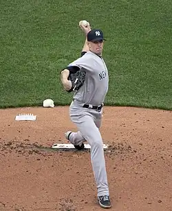 On November 19, 2018, the Mariners traded Paxton to the New York Yankees for Justus Sheffield, Dom Thompson-Williams, and Erik Swanson.[41] On April 21, 2019, Paxton became only the second Yankees pitcher (after David Cone in 1998) to strike out 12 or more batters in consecutive starts.[42] In 2019 he was 15–6 with a 3.82 ERA in 29 starts, in which he struck out 186 batters in 150+23 innings (11.1 strikeouts per 9 innings).[22]