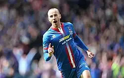 ![]() James Vincent celebrating scoring the winning goal in the 2015 Scottish Cup Final | |||