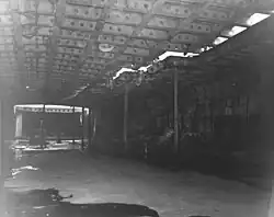 Ryūhō was attacked by Task Force 58 aircraft on 19 March near Kure, suffering hits by three 500 lb bombs and two 5.5-inch rockets. The damage was severe: the flight deck bulged upward between the two elevators, the No. 1 boiler was punctured by a bomb fragment, the stern settled two meters into the water, and a raging fire broke out. Twenty crewmen were killed and thirty were wounded. Upon returning to Kure on 1 April, Ryūhō was considered to be a total loss. Moored as an abandoned hulk off of Etajima, she was attacked by American aircraft again on 24 July and 28 July. She was struck from the navy list on 30 November 1945[2] and scrapped in 1946.