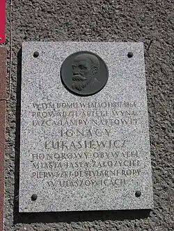 Memorial plaque at the former pharmacy of Ignacy Łukasiewicz