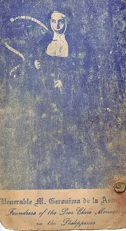 Jerónima de la Asunción, O.S.C. (Spanish: Jerónima de la Asunción García Yánez y De La Fuente; 9 May 1555 – 22 October 1630) was a Spanish Catholic nun and abbess who founded the Real Monasterio de Santa Clara (Royal Monastery of Saint Clare) in Intramuros, Manila, Philippines.