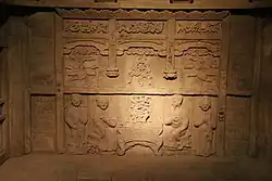 Families of Balhae descent were able to rise high in the Jin hierarchy. Aguda was advised by a Balhae man named Yang Pu who aided him in establishing an imperial court. An 1125 embassy noted that Jin protocol officers included Khitans, Jurchens, as well as Balhae who all spoke Chinese.[40] A descendant of the Balhae royal family, Da Gao (1086–1153), served in the Jin army and was given command of eight Balhae battalions in the war against the Song. One Balhae commander, Guo Yaoshi (active 1116–1132), fought in each of the Liao, Jin, and Song armies at one point or another.[41] Another named Li Yin became jinshi in 1194 and died in 1214 fighting against the Mongols.[42] Balhae men such as Zhang Rulin (d. 1190) and Zhang Rubi (d. 1187) were key advisers of Emperor Shizong and played a critical role in supporting his accession to the throne. Many Balhae literati-officials such as Gao Kan (d. 1167), Gao Xian (jinshi 1203), Zhang Rulin, Zhang Runeng, Zhang Ruwei (fl. 1150), Zhang Rufang, and Wang Tingyun (1151–1202) were entrusted as arbiters of culture and cultivated taste.[43] Some of the Jin emperors had direct familial connections to Balhae people through their mother's lineage. The fourth, fifth and seventh emperors of the Jin dynasty were mothered by Balhae consorts.[44]