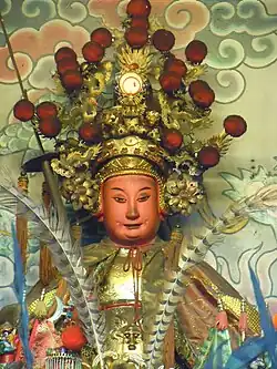 In folk temple festivals, Jinzha is often referred to as the "Great Crown Prince of Tuotuo Tianwang" and is worshipped in temples along the southern coastal regions alongside his younger brothers, the Second Prince Muzha and the Third Prince Nezha.[1][3]