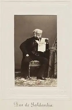 João Carlos Gregório Domingos Vicente Francisco de Saldanha Oliveira e Daun, 1st Duke of Saldanha (17 November 1790 – 20 November 1876; Portuguese pronunciation: [salˈdɐɲɐ]) was a Portuguese marshal and statesman.