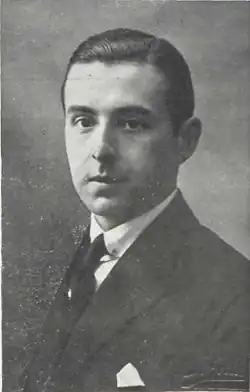 In 1916 Joaquín supported own father in his bid for the Cortes from Nules; in the extremely divided local conservative setting[43] Luis Manglano was elected[44] thanks to support of the right-wing conservative fraction named Maurists, the Carlists, and the Republicans.[45] In 1917 Joaquín appeared among ciervistas, followers of another conservative tycoon, Juan de la Cierva.[46] During the 1918 campaign he decided to compete himself, undoubtedly banking on previous success of his father, also from Nules. Political environment was extremely complex: according to a present-day scholar he was supposed to represent the Maurists and two Carlist groups, the mainstream Jaimists and the local breakaways, named Paquistas, who even set up La Gaceta de Levante to support the campaign.[47] The Carlists eventually supported Jaime Chicharro and it was only the mauristas who backed Cárcer, though contemporary press dubbed Manglano ciervo-datista[48] or ciervista.[49] The result was that with the conservative vote split, the mandate went to a Liberal candidate.[50]