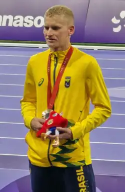 Joeferson Marinho de Oliveira (born 7 January 1999), known as Joeferson Marinho, is a Brazilian paralympic athlete. He won the silver medal in the men's 100 m T12 event at the 2024 Summer Paralympics.[1] He originally won the bronze medal in the event.[2][3][4]