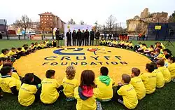 The Johan Cruyff Foundation (initially Johan Cruyff Welfare Foundation[2]) is a foundation started in 1997 by Dutch soccer player and coach Johan Cruijff (1947-2016) to provide opportunities for children, especially children with disabilities, to be active in sports and play. To that end it builds "Cruyff Courts", small soccer fields with artificial grass, integrated into neighborhoods. By 2016 it had built over 200 such courts, 33 of which specially designed for handicapped children in appropriate locations. Cruyff Courts are typically built as a partnership between the foundation and the city government,[3] and if a court is near a school, it has to host a school soccer tournament at least once a year.[4]