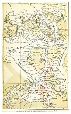 The probable routes taken by HMS Erebus and HMS Terror during Franklin's lost expedition; from John Brown's book