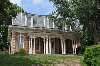 John Dickinson Dopf Mansion is a historic home located at Rock Port, Atchison County, Missouri. It was built in 1876, and is a two-story, Second Empire style brick dwelling. It features a mansard roof ornamented with alternating bands of hexagonal and square slate shingles and a one-story front porch.[2]: 2