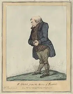 At the same time Farquhar was princely in charitable contributions. He became a partner in the agency house of Basset, Farquhar, & Co. in the city, and purchased a share in the Whitbread brewery. His wealth, as it accumulated, was devoted partly to the purchase of estates, but more was invested. In 1822 he purchased Fonthill Abbey from William Thomas Beckford for £330,000, and he occasionally resided there until the fall of the tower in December 1825, shortly after which he sold the estate.[2]