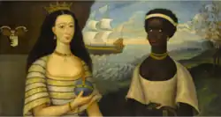 3. ^ Friar, Walter (1731) "Portrait of the Princess of Zanzibar with an African Attendant" (inscribed centre left: "JOHN HENDERSON of FORDELL Travelling in his youth thro several parts of Asia and Africa from y 1618 to y 1628 was delivered unto Slavery by a Barbari Prince in Zarquebar on the Cost of Africa where Princefs of that Countrie falling in love with him Even to Renoincing her Religion and Countrie contrived the mians of both their Escape and getting a board a ship trading up y Red Sea landed cam to Alexandre(a) where she died whofe Picture Mr Henderson cauised to take with her black Maid after their oun Country habett from y original Picture at oterston by W. Frier 1731"); "Portrait of the Princess of Zanzibar with an African Attendant".