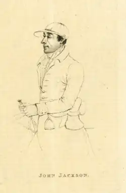 ![]() John Jackson, English jockey, illustrated in the Sporting Magazine, 1816 | |