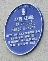 In 2009 the Waterford City Trust erected a blue heritage plaque on the house where John was born in Barrack Street, Waterford and in 2010 a long overdue biography of John was published – THE UNCONQUERABLE KEANE: John Keane and the rise of Waterford hurling by David Smith.