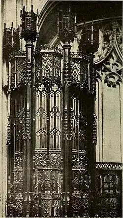Other clues are based on his unique handiwork. Based on the craftsmanship, Tresilian was involved with making gates to Edward IVs tomb and suite of door furniture for his chantry at St. George's Chapel, Windsor, between 1477 and 1484.[1] Before 1841 these had been attributed to Brabant painter Quentin Metsys (who lived from 1466 to 1530). Tresilian's other works would be the lock and ring plates to the door of Edward IVs chantry, the lock plates originally on the north and south sides of the choir and Henry VI offertory.