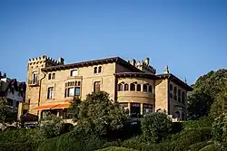 In 1903[21] Ampuero married Casilda Gandarias Durañona (1872-1968),[22] descendant to a powerful Basque industrialist family related to numerous mining and metallurgy enterprises.[23] The couple first settled at the Durango Eche Zuria estate, but later they purchased and re-modeled a grandiose residential estate in Getxo, to be known as Palacio Ampuero.[24] They had 3 children, born between 1906 and 1912; the best known was Casilda Ampuero Gandarias, the active Carlist herself who married general José Varela;[25] José María[26] and Pedro[27] did not engage in politics and dedicated themselves to business, holding high executive posts in various companies.[28] This was the case also of many Ampuero's grandchildren from the Varela Ampuero, Ampuero Urruela and Ampuero Osma families,[29] though the best known one, Casilda Varela Ampuero, became sort of a media celebrity having married the world-famous guitar virtuoso, Paco de Lucia.[30] Also great-grandchildren form part of the Ampuero business dynasty and as such are present in the gossip media; this is the case e.g. of Joaquín Güell Ampuero.[31]