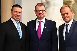 Sipilä with Estonian Prime Minister Jüri Ratas and European Council President Donald Tusk, Tallinn Digital Summit 2017