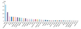The Mean RPKM values for KIAA0895 in 27 different tissue types.