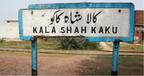 Kala Shah Kaku Railway Station (Urdu and Punjabi: کالا شاہ کاکو ریلوے اسٹیشن) is located in Kala Shah Kaku town, Sheikhupura District of Punjab, Pakistan. It lies on the Karachi–Peshawar Railway Line.
