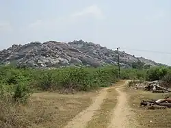 Kanchiyur hillock is about 400 feet in height. In the top of the hill, there is a cave which contains 10 stone beds on the floor.[2] A stone seat also located near to the beds. All the stone beds have carved pillows. Among the 10 stone beds, pillows of four stone beds are carved semicircular (see the picture gallery) similar to that of found in Andimalai hillock of Cholapandiyapuram. Near the hill, broken pieces of pots belonging to 1st or 2nd centuries CE were found in large numbers.[3]