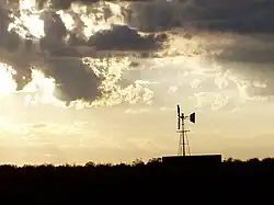 The introduction of the windpump to tap the Great Karoo's underground water resources in the late 1800s made permanent human habitation and sheep farming possible over large parts of the Great Karoo for the first time.[5][15] As a result, the teeming number of large antelope in the Karoo has dwindled into insignificance, and with them, the large carnivores have all but disappeared. Today, the caracal (7–19 kg),[39] black-backed jackal (6–10 kg),[39] Verreaux's eagle (3.0–5.8 kg) and the martial eagle (3.0–6.2 kg)[40][41] are arguably the largest predators likely to be seen in the Great Karoo today. Leopards (20–90 kg) do occur, especially in the mountains, but are very secretive, so are rarely seen.[39] Many of the animals that formerly inhabited the Karoo in large numbers, including lions, have been reintroduced to the area in nature reserves and game farms.