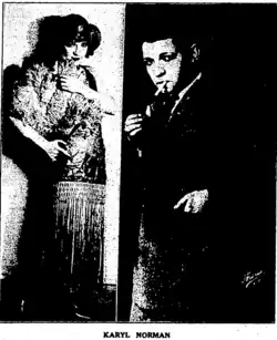 Norman was born in Baltimore, Maryland on June 13, 1897 to Mary and Norman Augusta Peduzzi.[1] He left home at the age of 16, joined Neil O'Brien's Minstrels[2] and began performing vaudeville on the US West Coast.[3] In 1917, he traveled to Australia as a theatrical performer.[4] He took the name Karyl because it was sexless, and Norman after his father.[3]