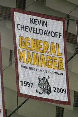 The Chicago Wolves banner honoring Cheveldayoff