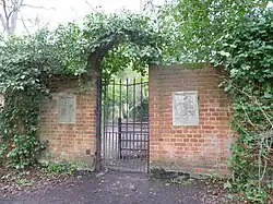 The most suitable field entrance for many villages was a wicket or field gate of English oak properly framed and pinned, hung to oak posts with hinges wrought by the local blacksmith. Where iron gates were more suitable over-elaboration was to be avoided. Designs had to be simple, made of wrought iron, and of such a type as could easily be opened and closed by children. Consideration too had to be given that the gates were strong enough to withstand rough and constant usage. The memorial panels were to be set on the upper portion of each gate pier.