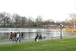 Meanwhile, the Velodrome had deteriorated over the years, and, by 2000, efforts were underway to renovate the track.[82] In 2003, a $2.3 million restoration drained the lake in stages, resulting in its current appearance. The city water was replaced with well water, an aeration system was installed the concrete bulkheads were replaced with natural-looking materials such as rocks and plants, and a small island for birds and turtles was built within the lake.[83] The Kissena Velodrome was also restored, and the track was rededicated in 2004.[82][84]