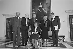 ![]() Presentation of Silver Carnations 1988, with E. Kits van Waveren on the far left | |