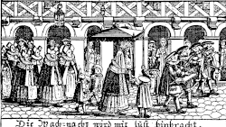 • Forms centering on bridal rituals, including the Kale-bazetsn (seating of the bride) or Kale-bazingn (singing to the bride). In these freeform pieces the badchen would sing to the bride as the soloist accompanied with a freeform piece.[38]