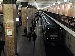 Komsomolskaya (Russian: Комсомо́льская) is a Moscow Metro station in the Krasnoselsky District, Central Administrative Okrug, Moscow. It is on the Sokolnicheskaya line, between Krasnye Vorota and Krasnoselskaya stations. It is located under Komsomolskaya Square, between the Leningradsky, Yaroslavsky, and Kazansky railway terminals. The station was named for the workers of the Komsomol youth league who helped to construct the first Metro line. It has a transfer at its namesake on the Koltsevaya line.