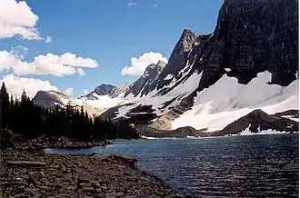 Floe Lake taken from the Floe Lake backcountry campground – July 2004