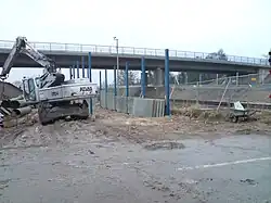 The installation of a lift to the bridge running above the platform has significantly shortened the route to the airport. The lift took over two years to complete.