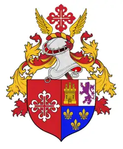 One nephew, Afonso Fernando de La Cerda, came to Portugal as a refugee[2] since he had supported the losing faction of Peter the Cruel in a civil war against his half-brother Henry of Trastamara for the throne of Castille. Once in Portugal he married for a second time to Violante Pereira, half-sister of the future constable of Portugal Nuno Álvares Pereira . From this marriage they had, among others Álvaro Gonçalves de Serpa, cited incorrectly in the genealogies as Martim Gonçalves de Lacerda, which was in fact Álvaro's son's name. Álvaro lived in the Portuguese town of Serpa. According to one handwritten genealogy,[3] he was a page of Fernando I of Portugal . He supported the party of the House of Avis against the pretensions of Juan I of Castile to inherit the Portuguese throne, since the former king Fernando had died without a male heir and the Castilan king was married to Fernando's only daughter. There is documentation that attests that this Álvaro Gonçalves was resident in Serpa in 1384, and it was also here that he married the daughter of a local lord, owner of the present Clock Tower of the town, Diogo Nunes de Serpa, who was a supporter of the party of Avis in the civil war, as confirmed in the "Chronicle of king John I", by the Portuguese chronicler Fernão Lopes.[4]