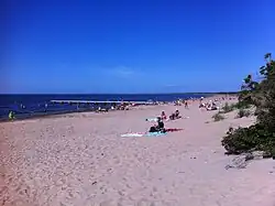 Laholm Bay Beach (Swedish: Laholmsbuktens strand) is the longest sandy beach in Sweden. The beach stretches from Stensån's estuary in Båstad all the way to Halmstad along the Bay of Laholm. Dunes and meadows follow the gently curved bay of 12 km. The beach is a wide, soft sandy beach and shallow and mighty dunes separate the beach from the rest of the coastal area.[1][2]