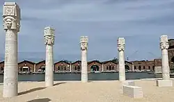 In 2024 Halsey created an outdoor installation for the 60th Venice Biennale's main exhibition Foreigners Everywhere. Similar to her previous architectural works, Halsey's installation keepers of the krown (2024) featured several tall white columns decorated with faces and extensive etched drawings and text referencing people and places in Halsey's community. The columns were installed with three similarly decorated white benches outside the main Arsenale building.[17]