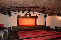 The theatre opened in Arlington, Texas, in 1992. The theater was founded by John Hopkins, a former puppeteer from Six Flags Over Texas and Pady Blackwood, of Howdy Doody fame and former Bil Baird artist.[1][2] The theater was created by converting the former Greyhound bus station in downtown Arlington into a miniature stage that housed a bridge stage with a fly rail system, seating for 80 persons, concession counter, and a small retail gift shop. The theater catered to families and children, as well as welcomed child care organizations, schools field trips, and other youth organizations. Unlike most theaters, the company structure was for profit. The primary income source for the theater was ticket sales derived through group bookings. The shows the first season included Hansel and Gretel, Aladdin, and The Wizard of Oz. Although popular with local families, the theater experienced a sluggish start. In the 4th year of operation, the landlord raised the rent and the theater became financially unstable when sales stalled during non-peak seasons. In 1995, an agreement was made to move the theater to Dallas, and the Arlington location closed in 1996.