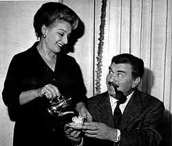Actor Gino Cervi (left) with the Belgian author Georges Simenon (center) and the Italian publisher Arnoldo Mondadori