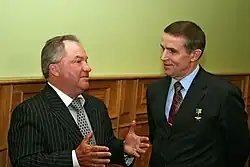 Politician Rostyslav Talsky of the Kyiv Bukovina Society congratulating Kadenyuk as a Hero of Ukraine, 2009