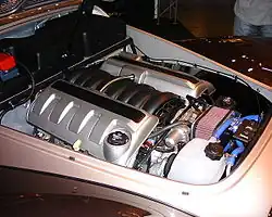 First historical design sketches of this sports car were made at V. Vemmerlöv in Sweden.[2] The new Leopard 6 Liter's Roadster, with the exception of the GM LS2 All-aluminum V8 engine (also powering the Chevrolet Corvette), is completely hand crafted at a small production facility at Mielec, Republic of Poland. The current production capacity at the new factory is limited to only 25 units per year.