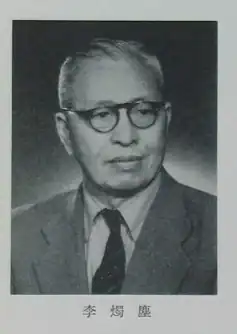 Li Zhuchen (Chinese: 李烛尘; September 16, 1882 – October 7, 1968) was a Chinese male politician, who served as the vice chairperson of the Chinese People's Political Consultative Conference. [1][2]